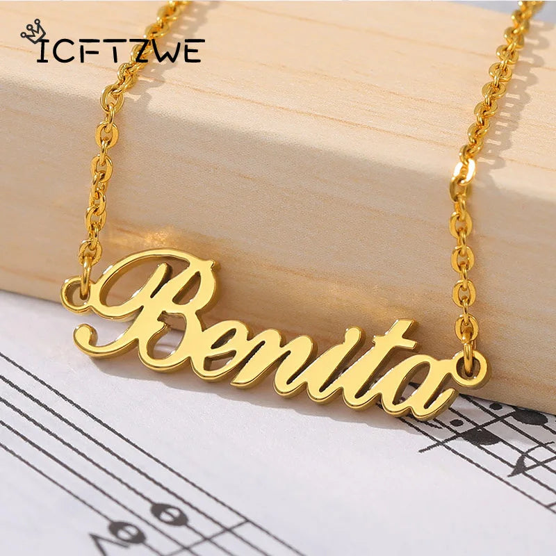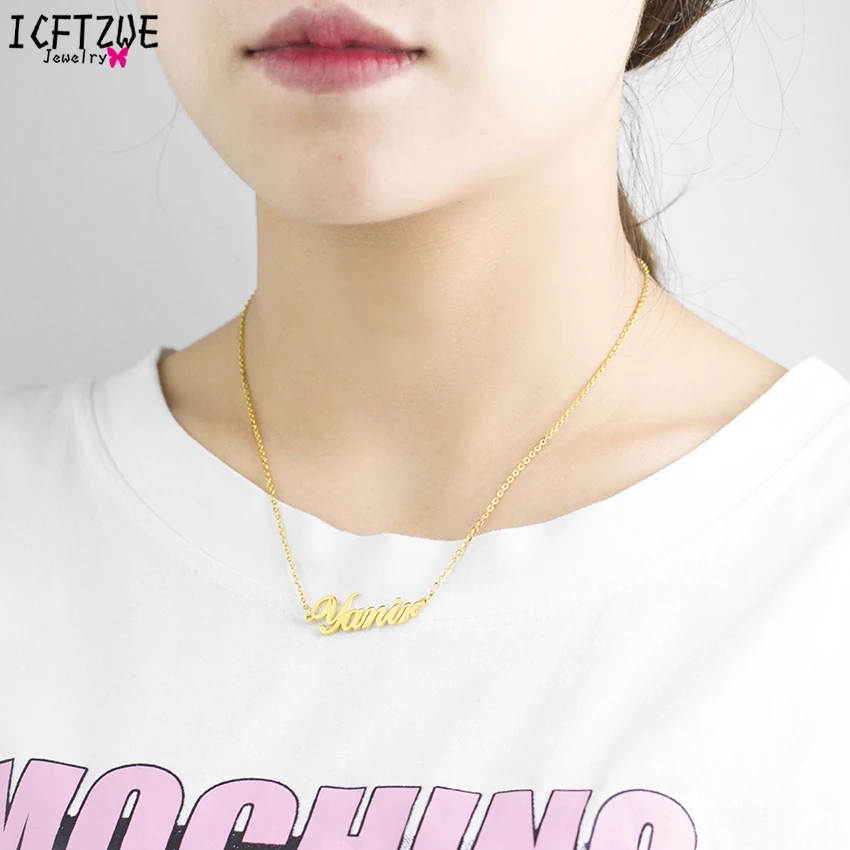 Custom Name Necklace Personalized Stainless Steel Gold Necklace Women Charms Long Chain BFF Fashion Jewelry Gift Collier Femme