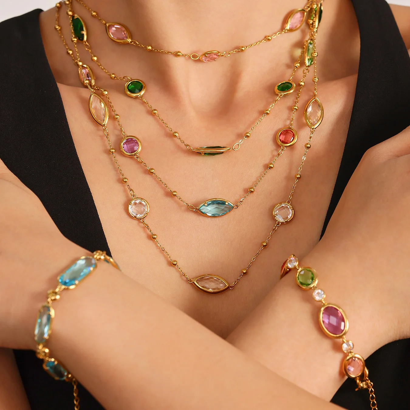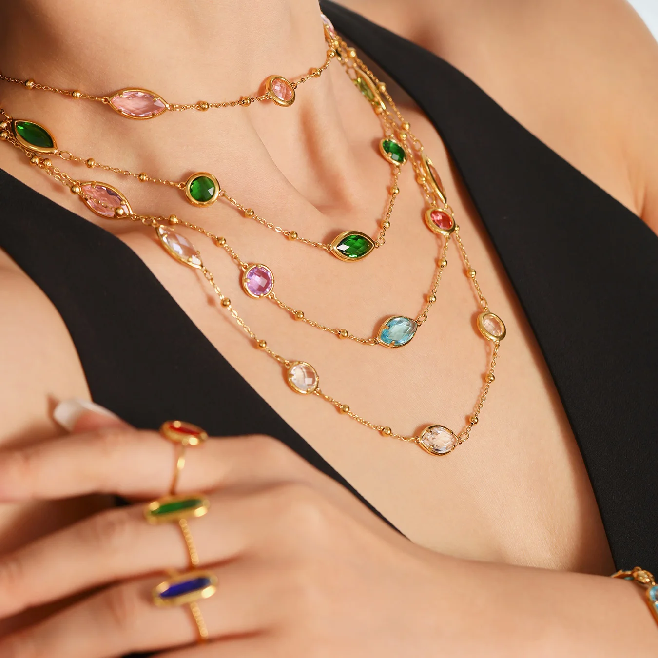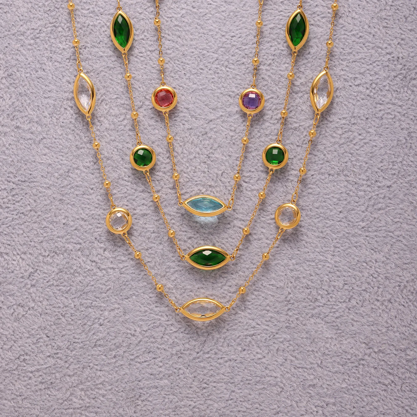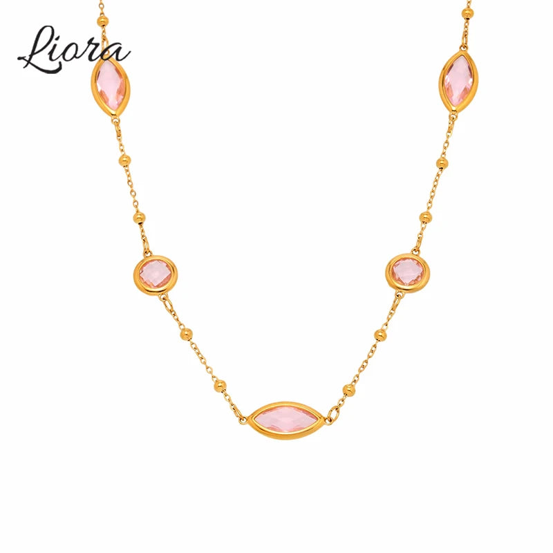 Liora Exclusive Long Chain High Quality Glass Necklace For Women Stainless Steel Necklace Women Wedding Jewelry Accessory