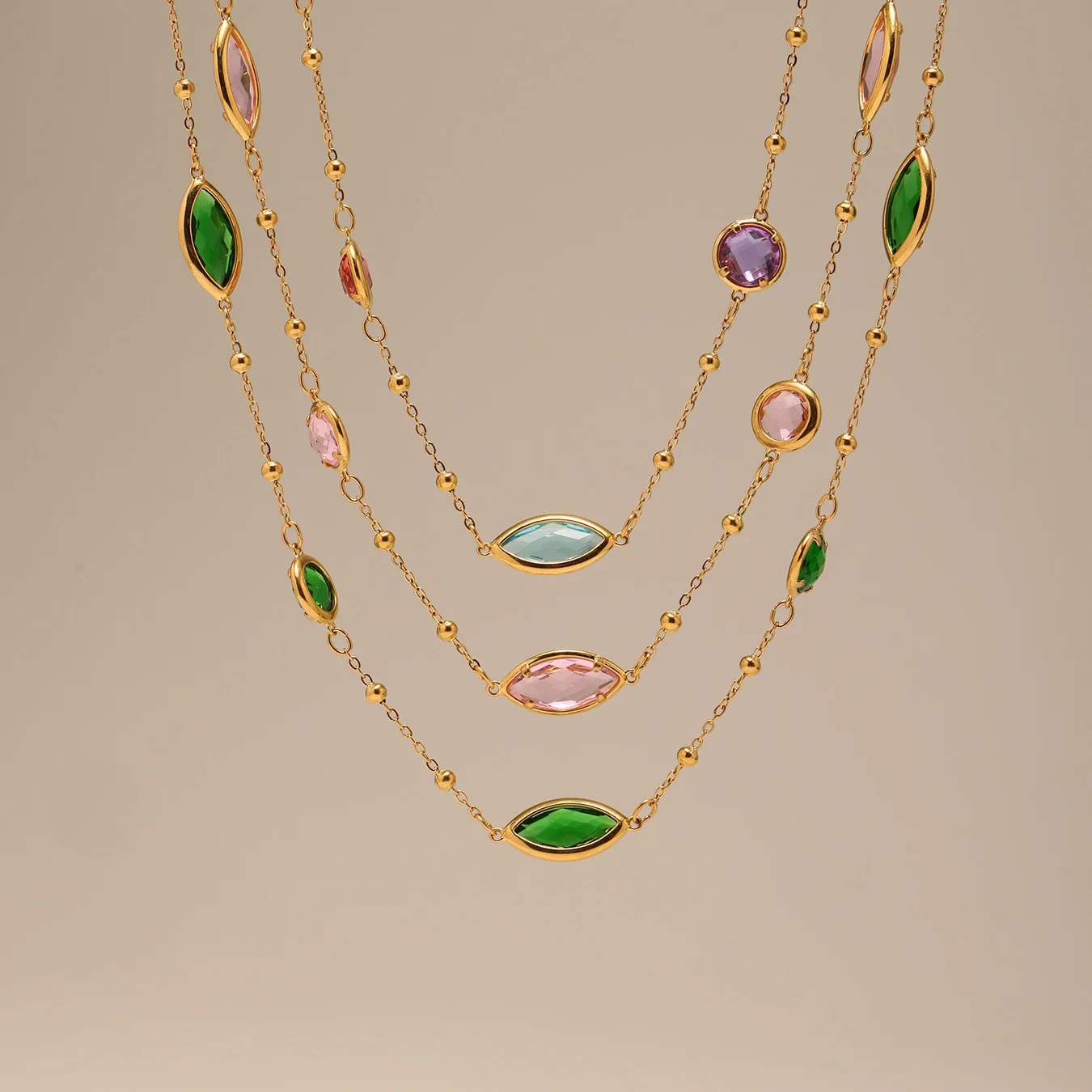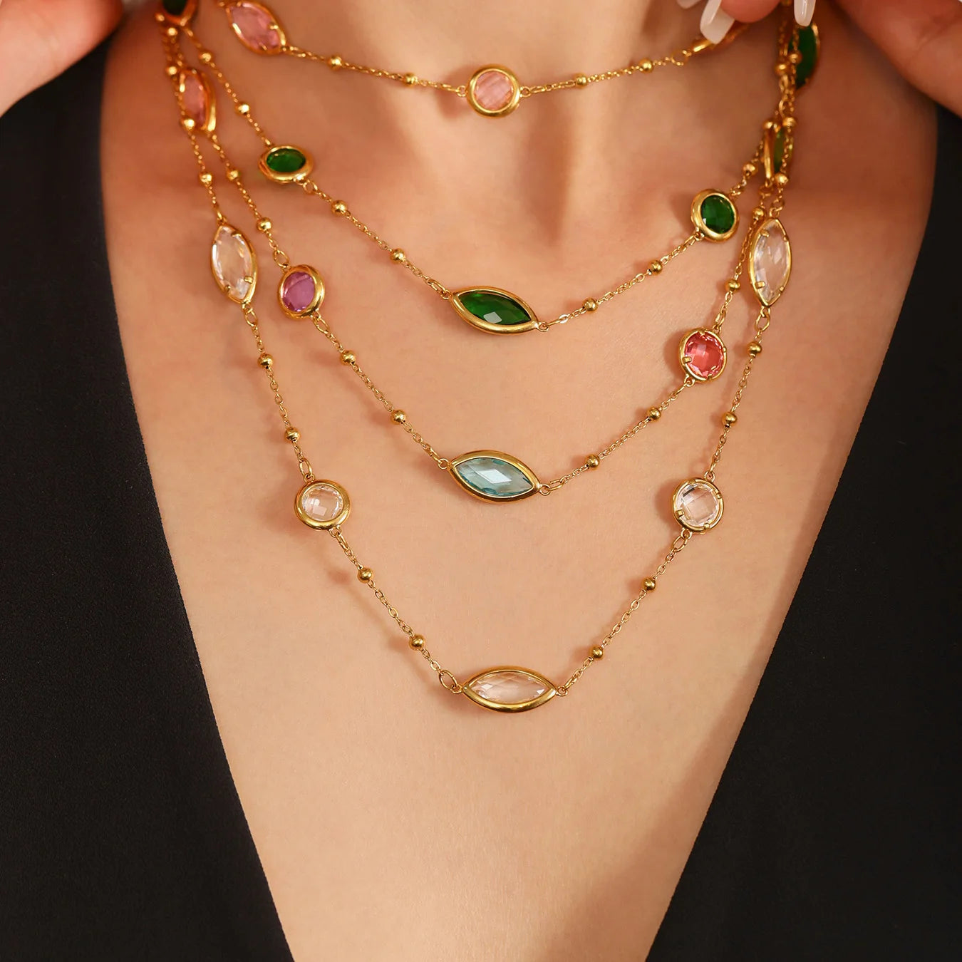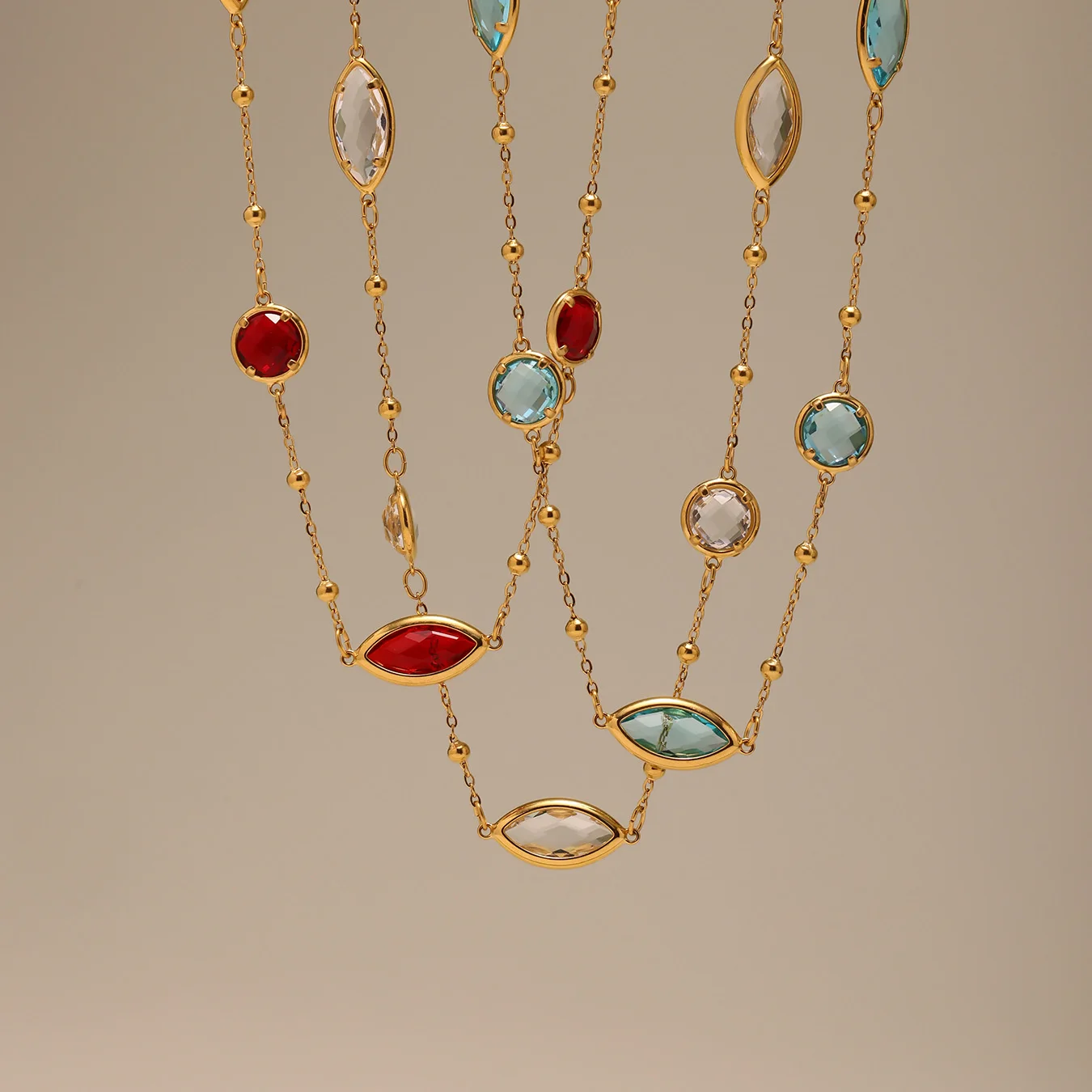 Liora Exclusive Long Chain High Quality Glass Necklace For Women Stainless Steel Necklace Women Wedding Jewelry Accessory
