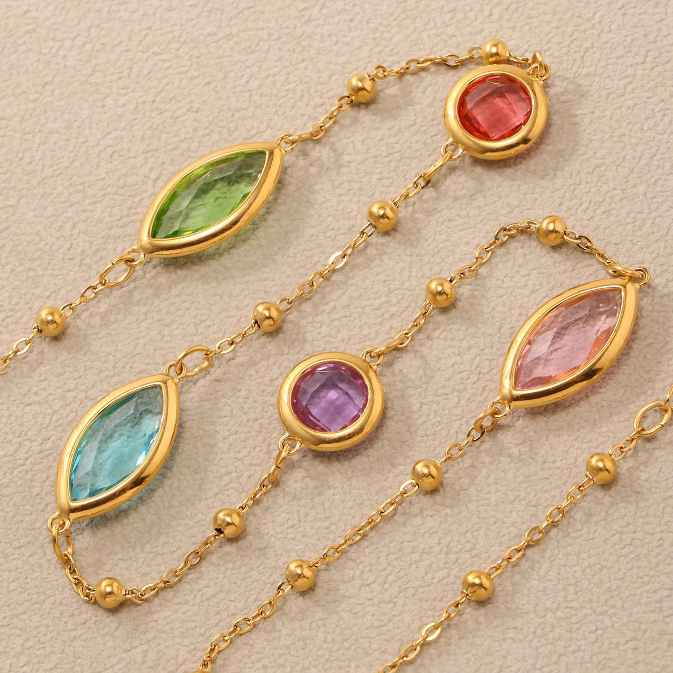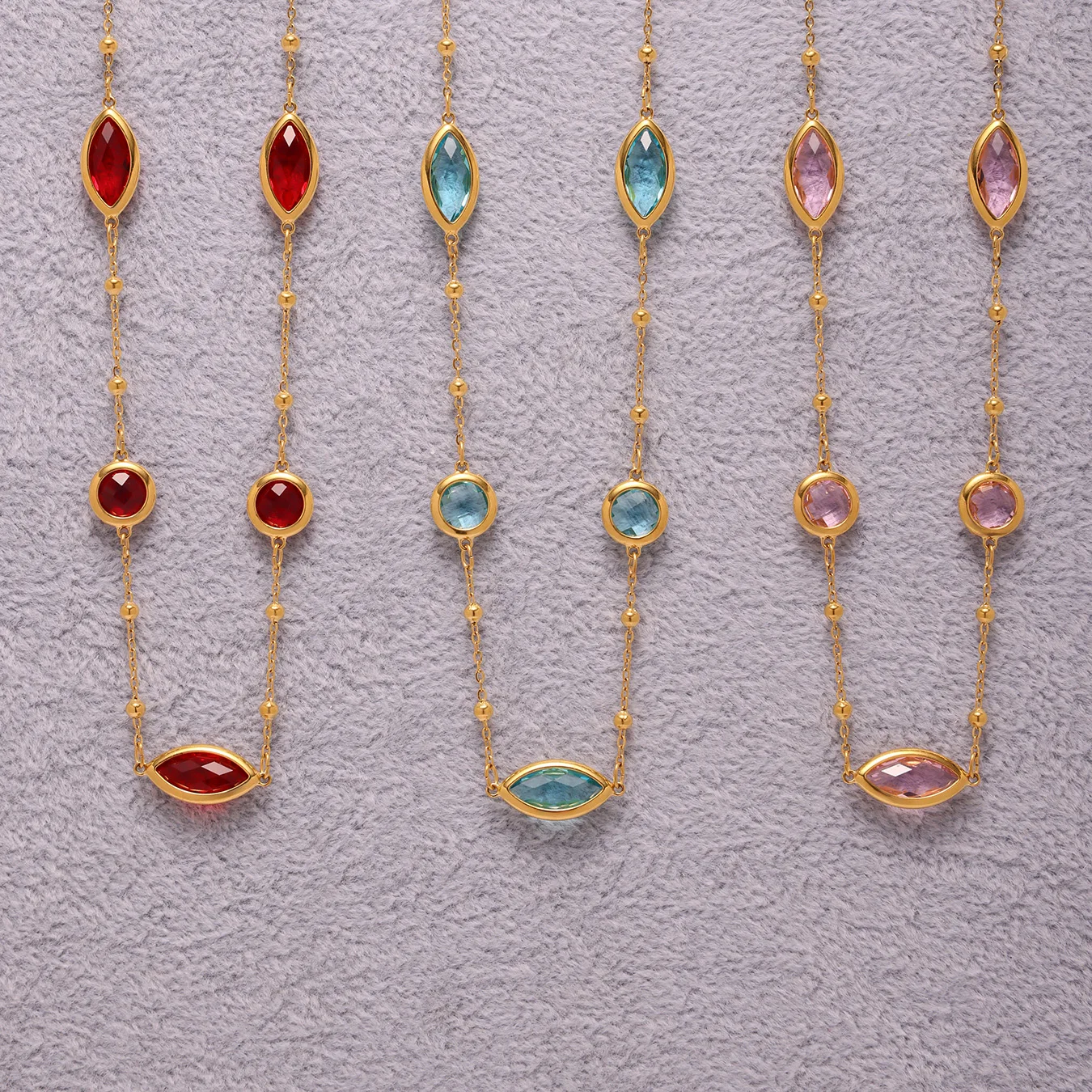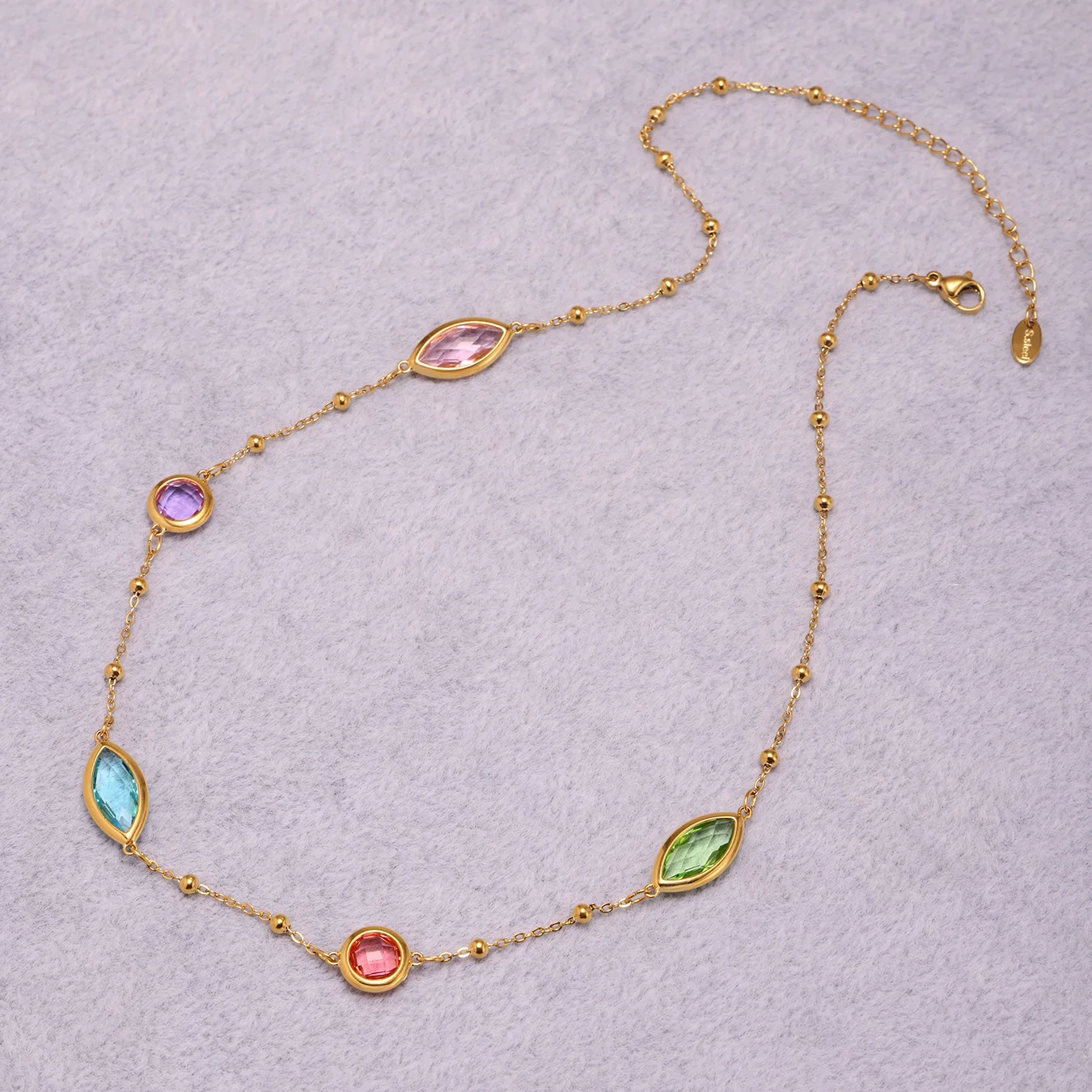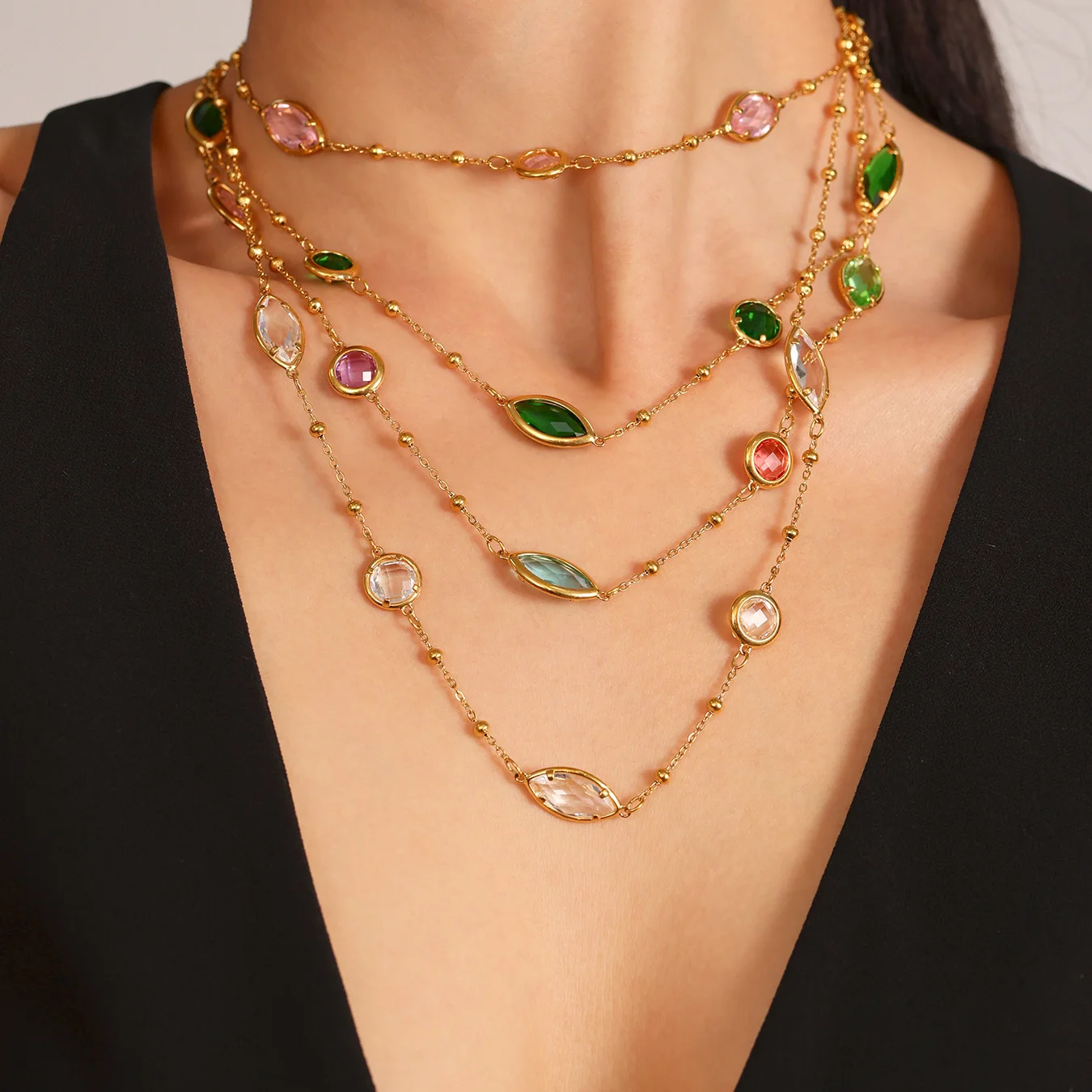 Liora Exclusive Long Chain High Quality Glass Necklace For Women Stainless Steel Necklace Women Wedding Jewelry Accessory
