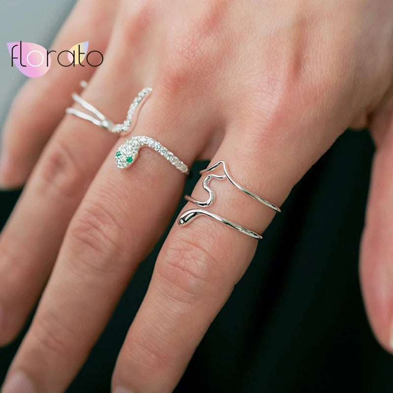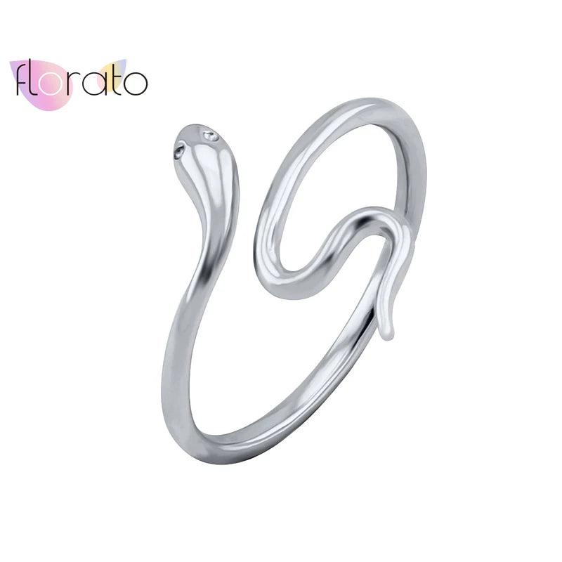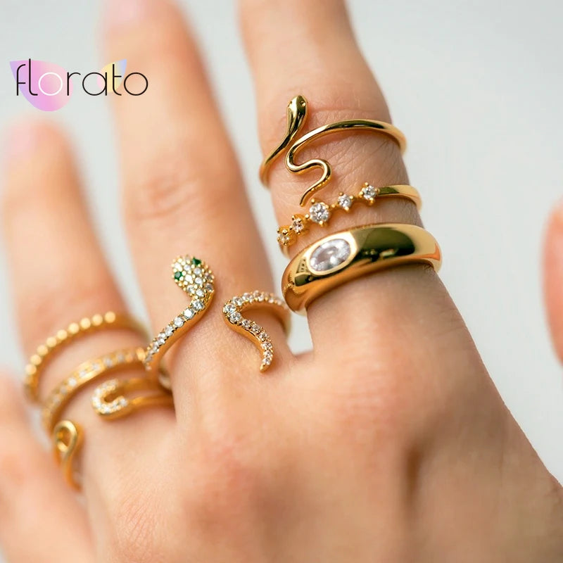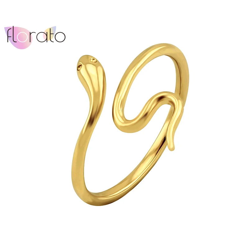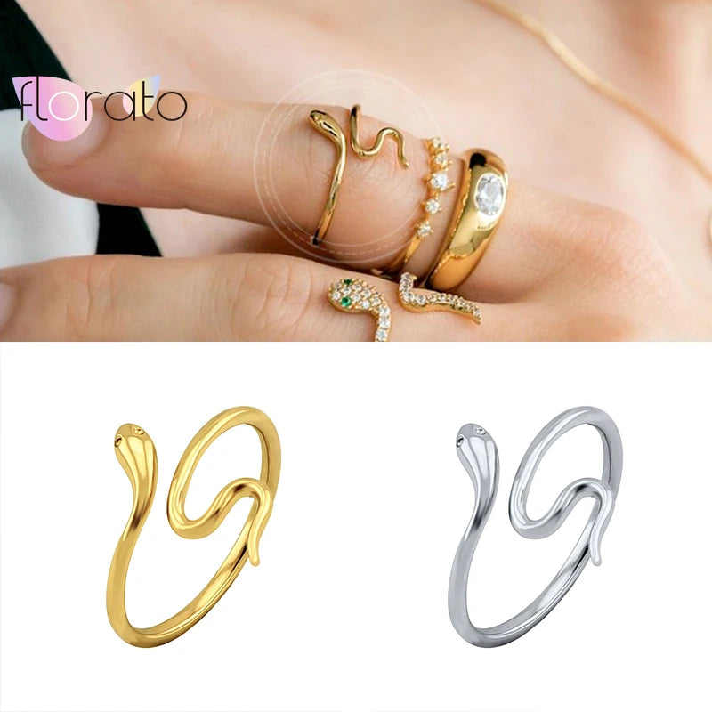 Plated 24K Gold/925 silver Bohemian Snake Ring for Women Artistic Design Opening Resizable Female Statement Ring Fashion Jewelry