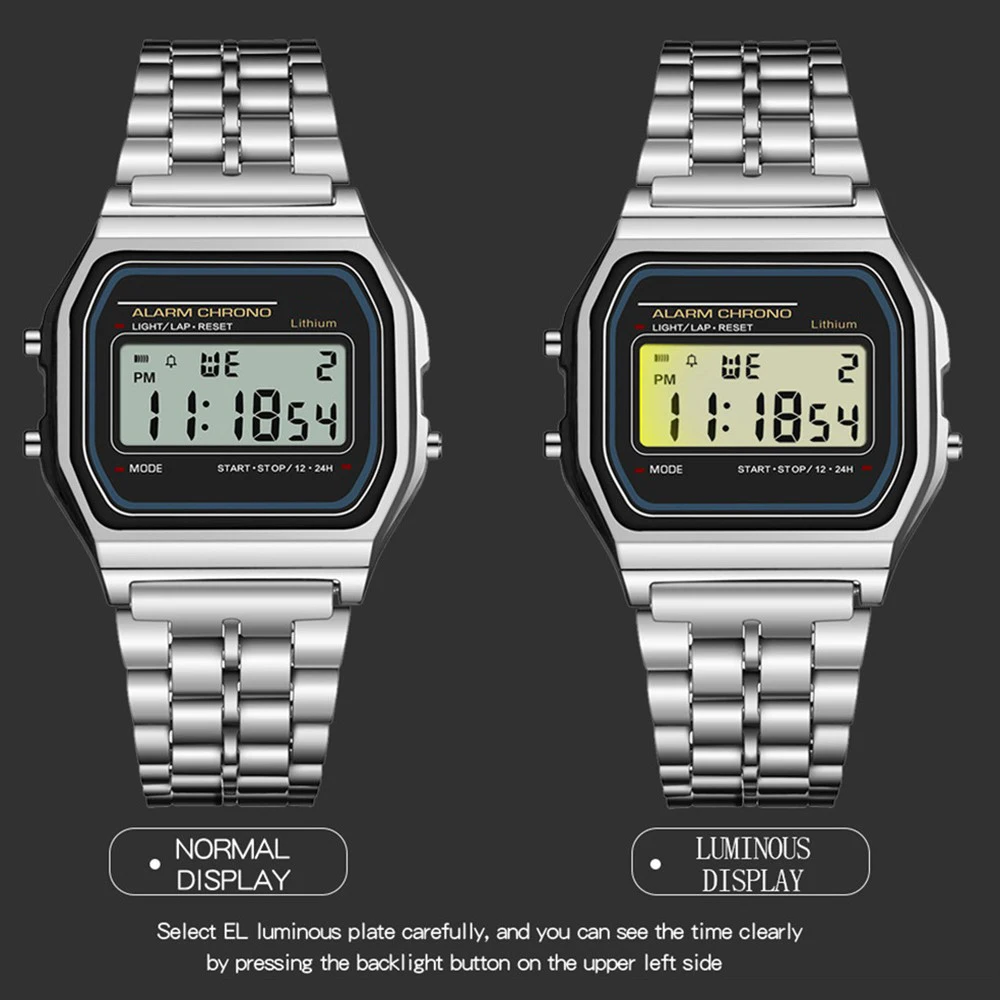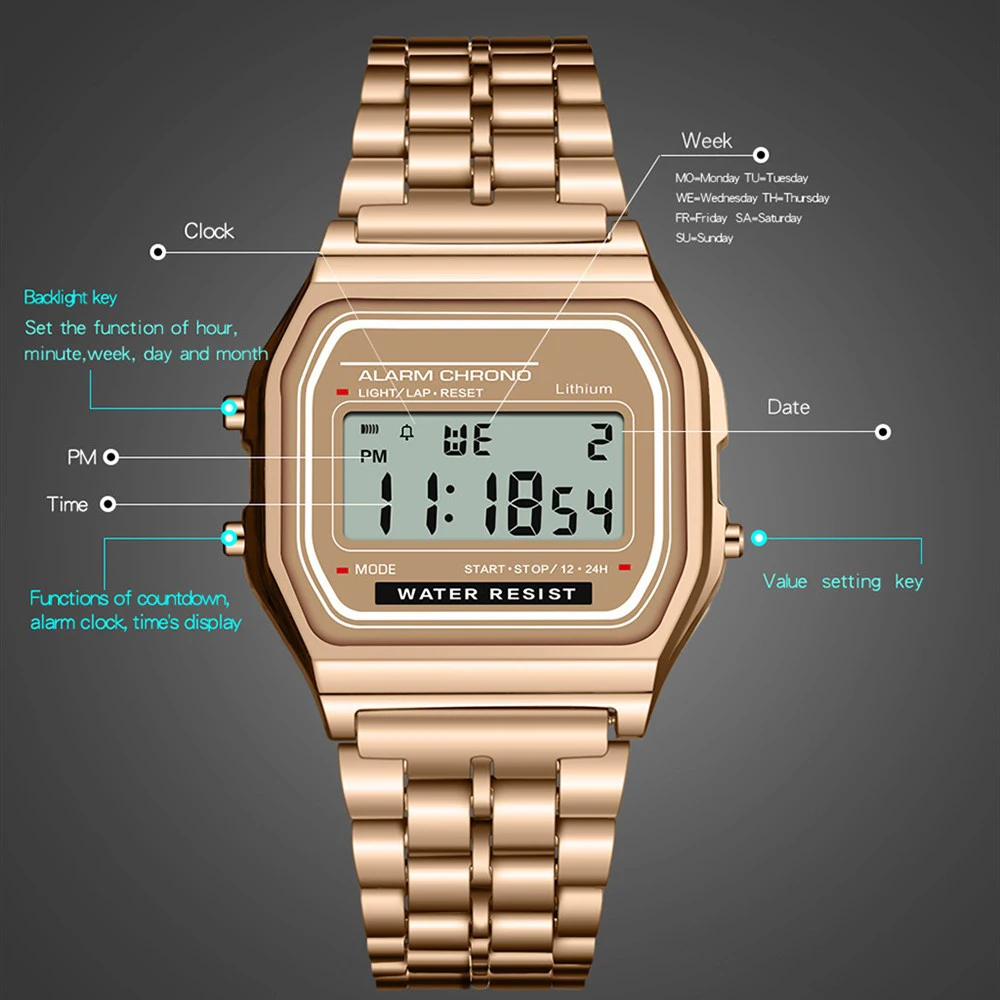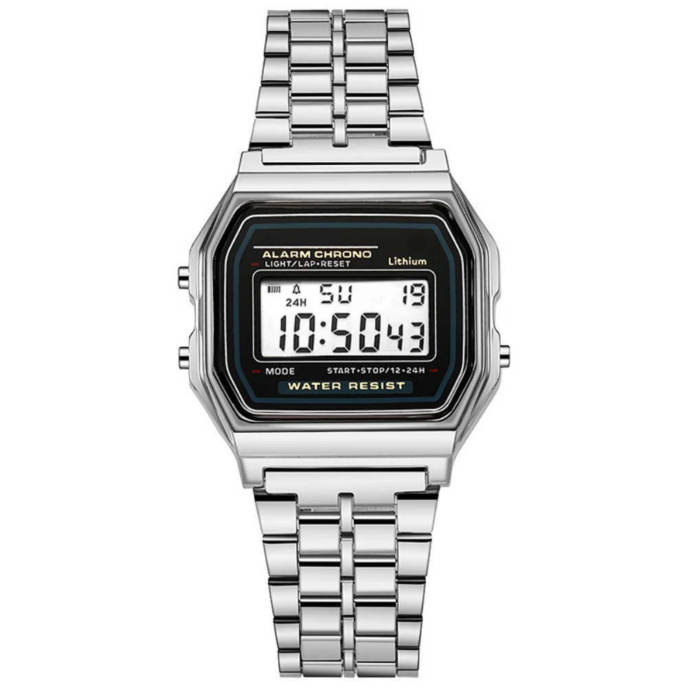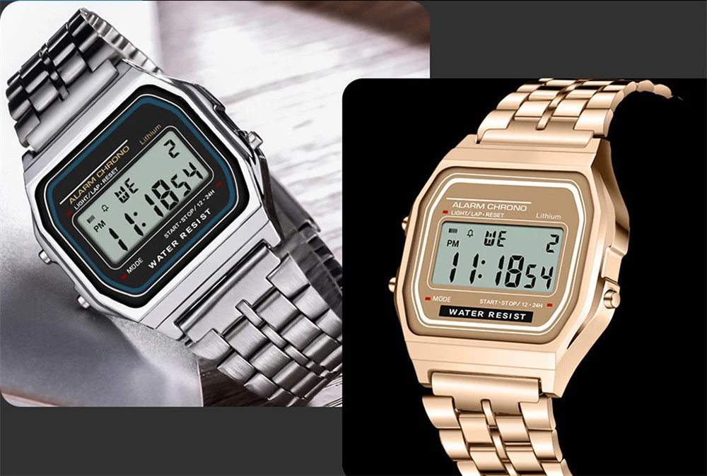 Kadınlar İçin Zarif Dijital Saat Altın Gümüş Paslanmaz Çelik İş Kadınları Elektronik Kol Saatleri Erkek Saati