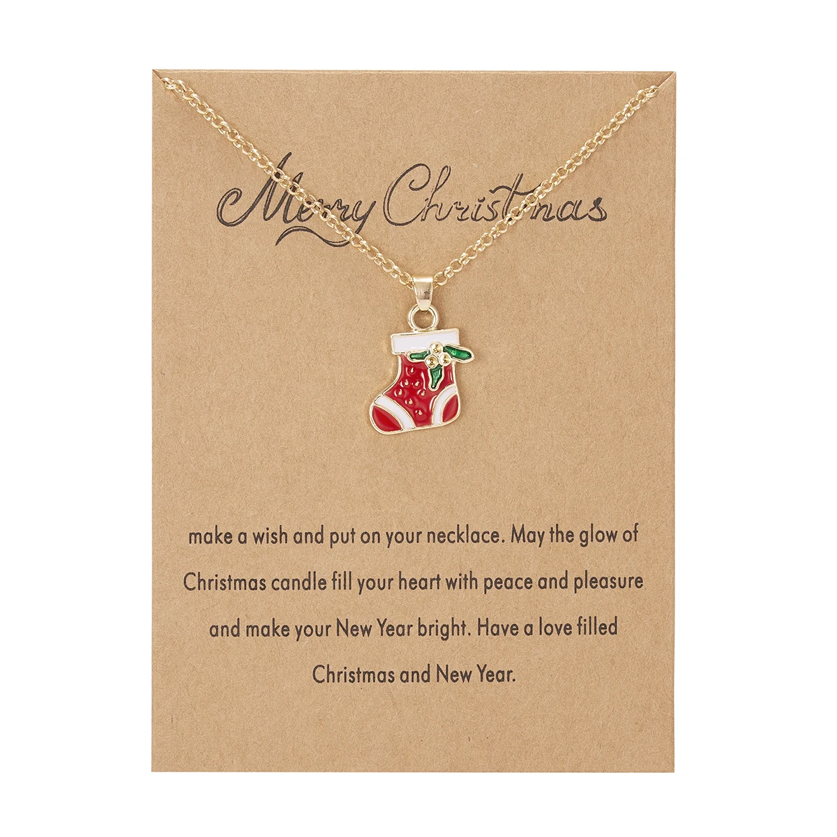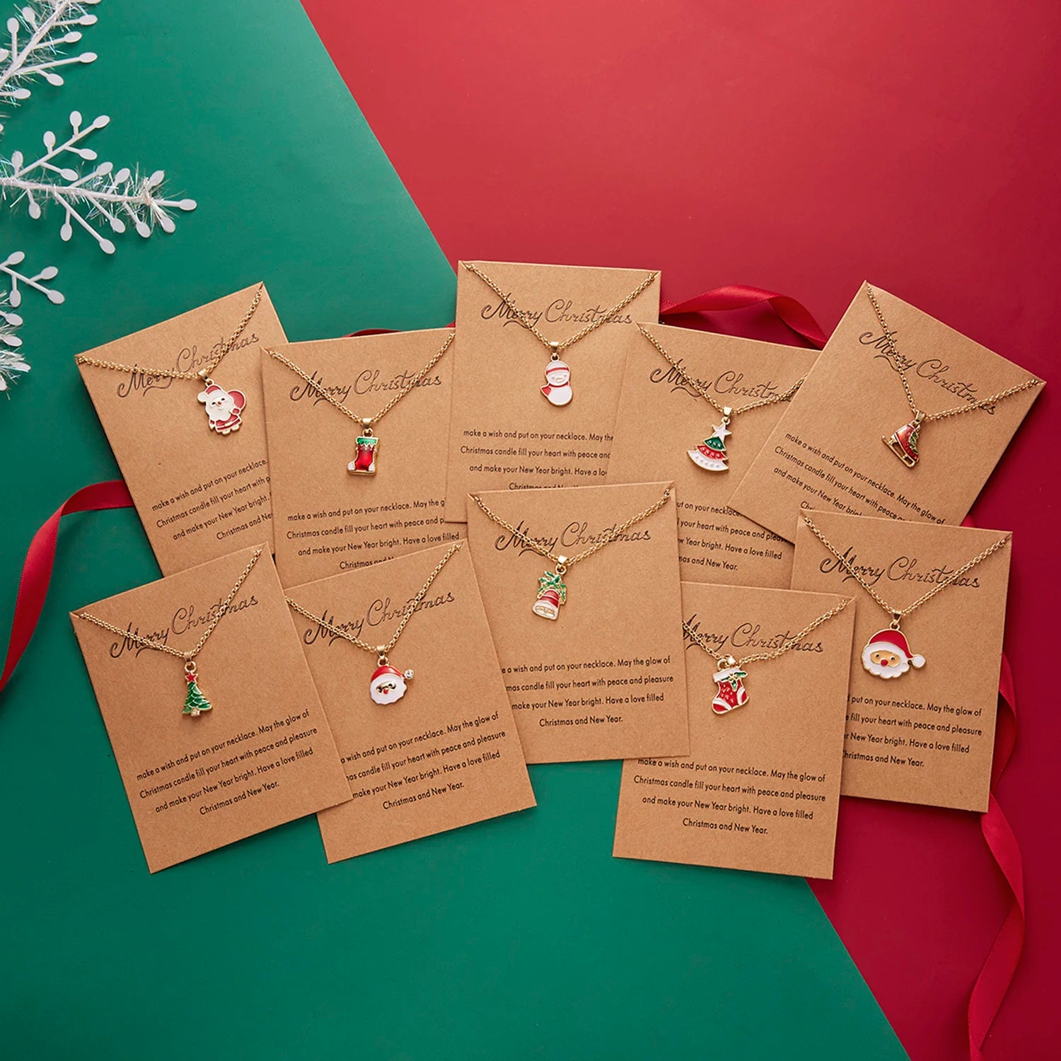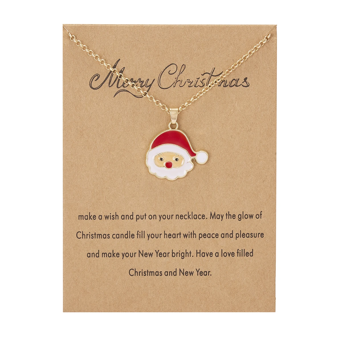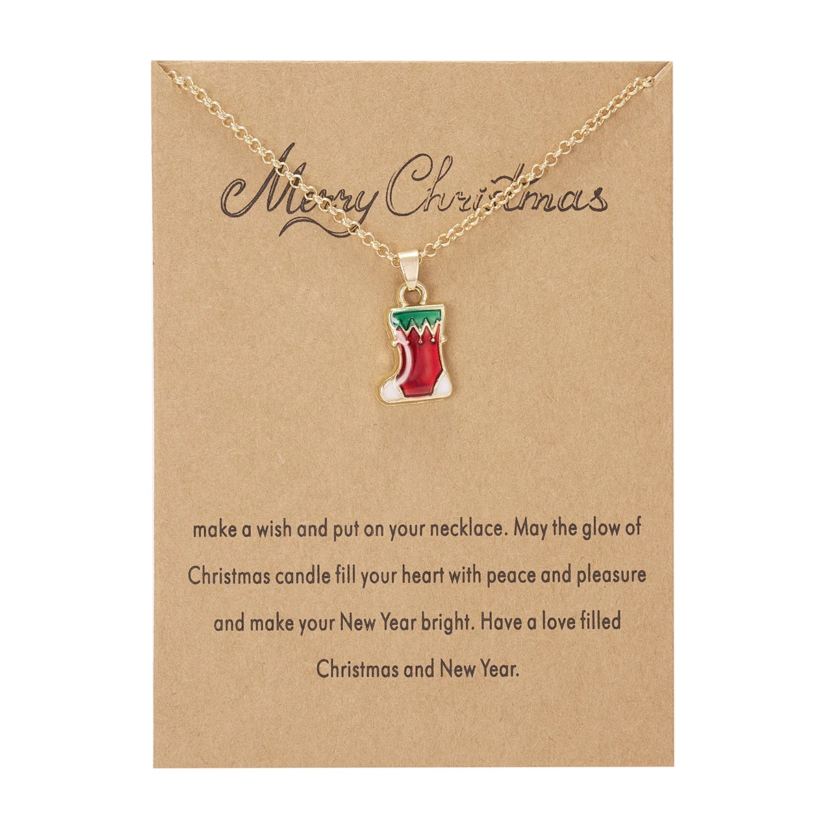 Cute Christmas Neck Chain Tree Star Snowman Santa Claus Bell Boots Wish Painting Oil Paper Card Necklace Jewelry New Year Gifts