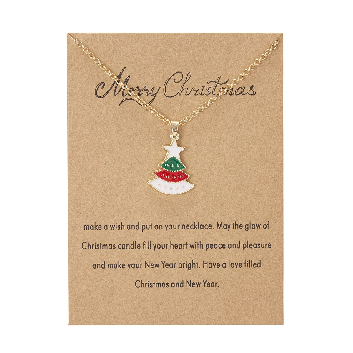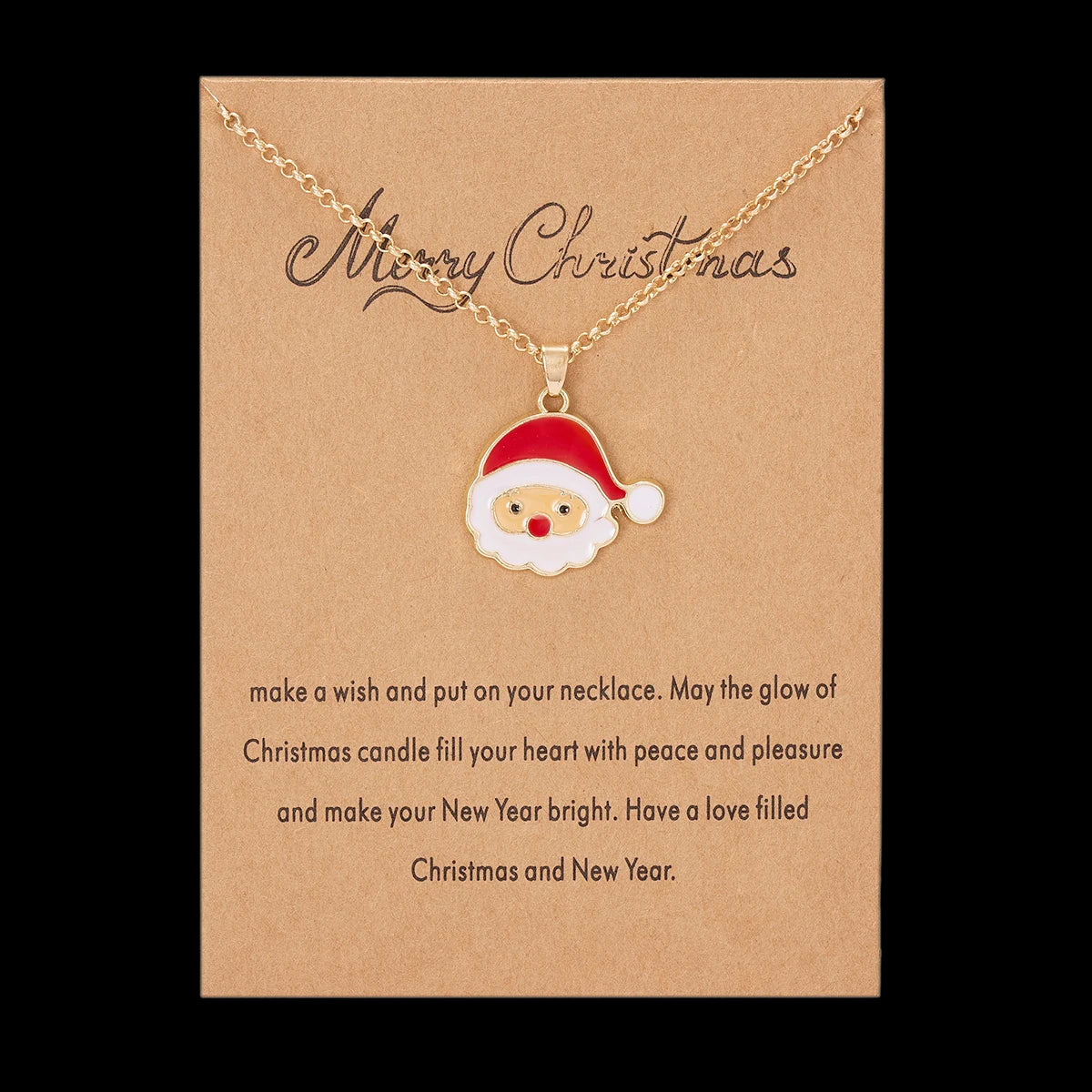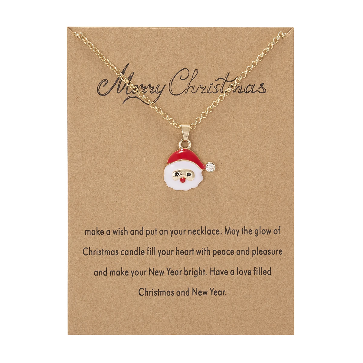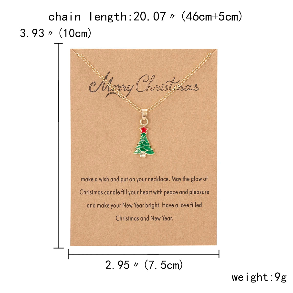 Cute Christmas Neck Chain Tree Star Snowman Santa Claus Bell Boots Wish Painting Oil Paper Card Necklace Jewelry New Year Gifts