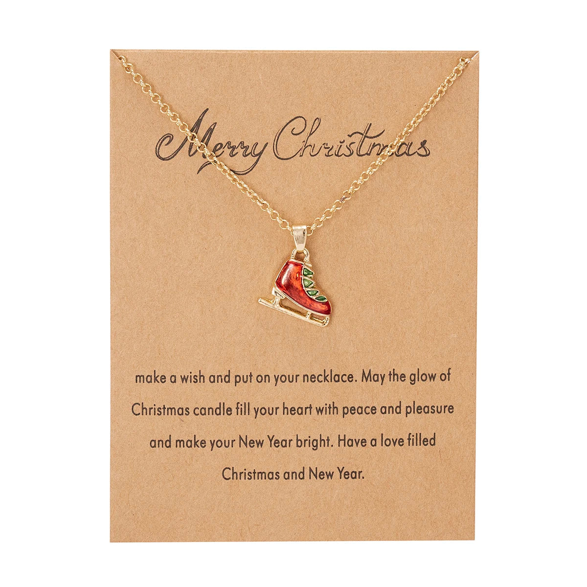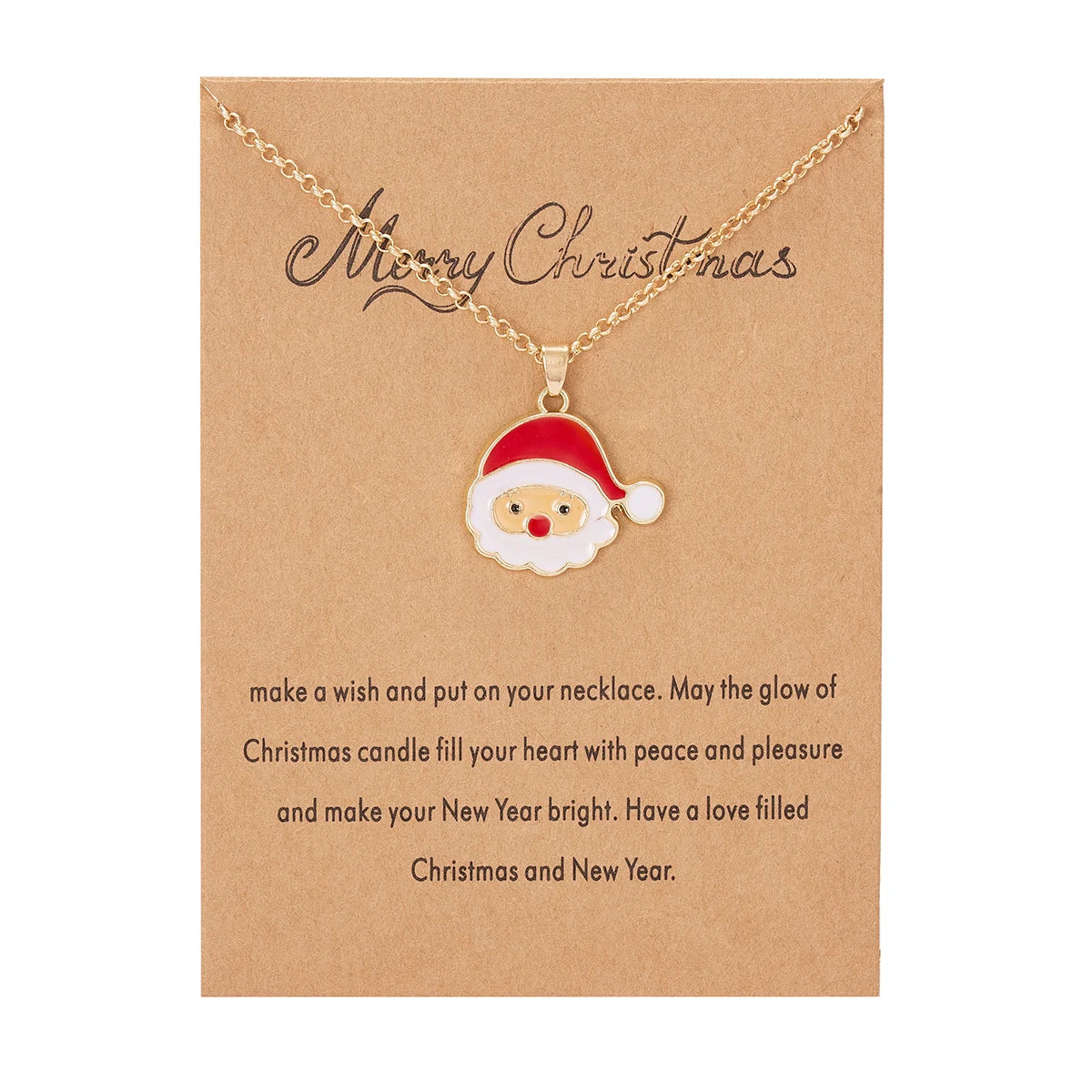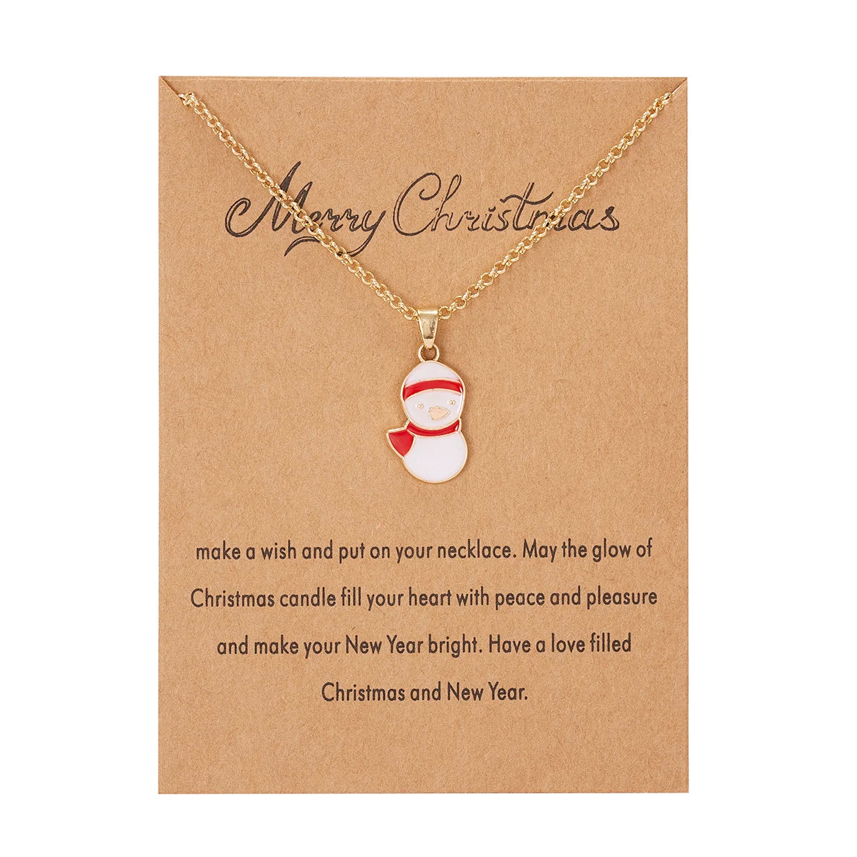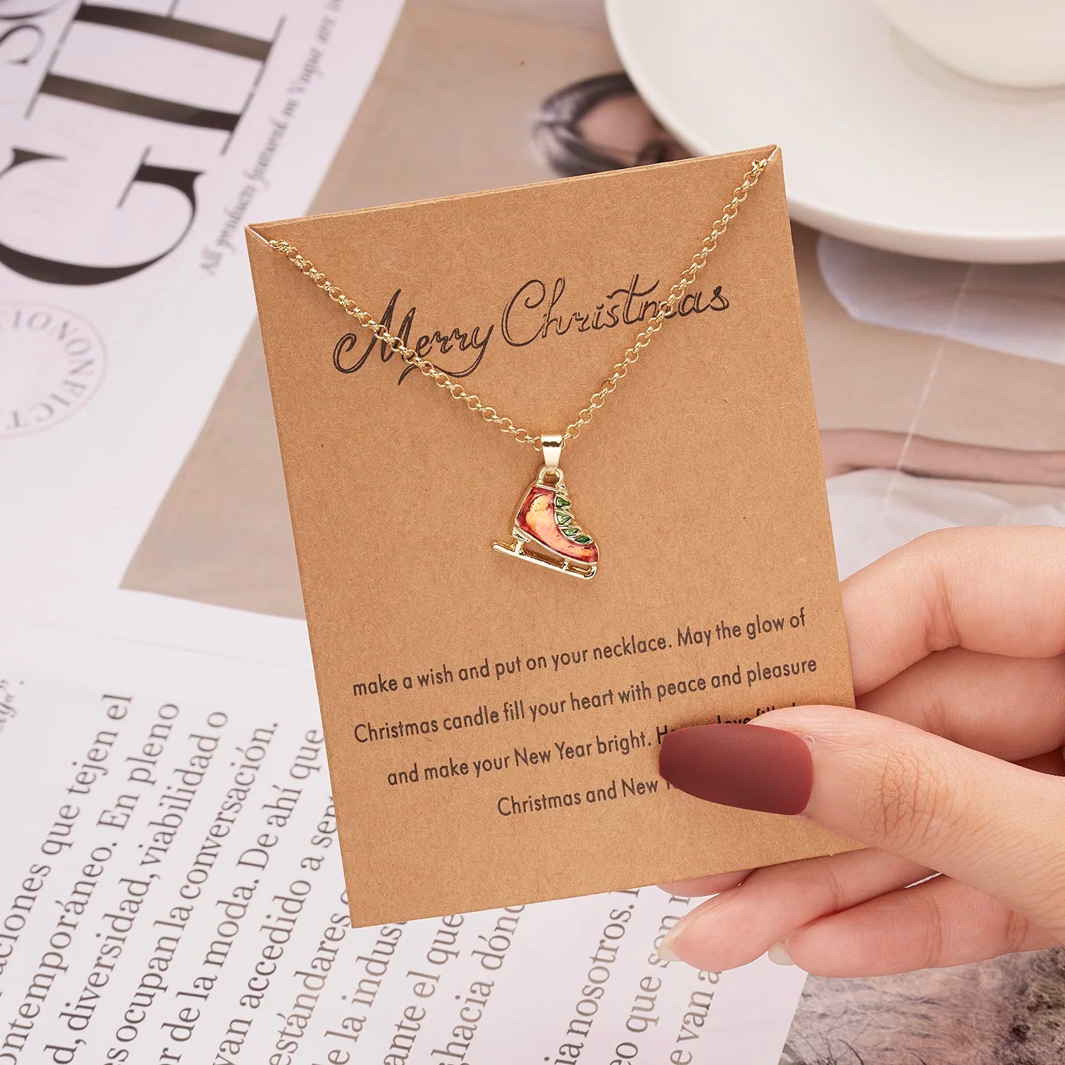 Cute Christmas Neck Chain Tree Star Snowman Santa Claus Bell Boots Wish Painting Oil Paper Card Necklace Jewelry New Year Gifts